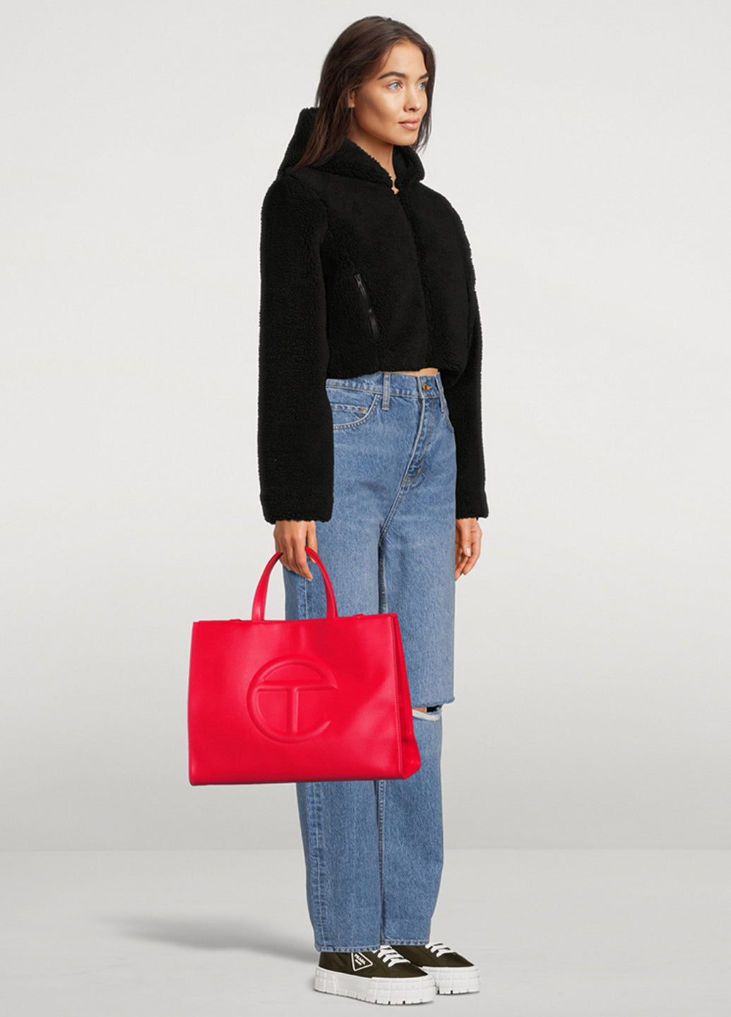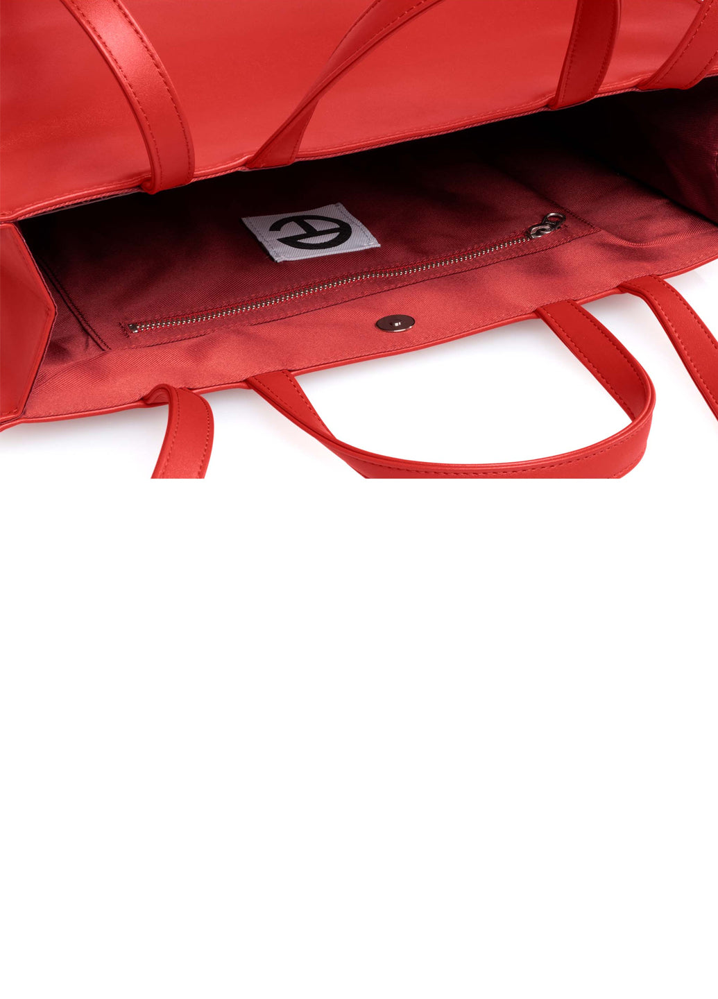 Культова сумка для покупок - практична сумка на кожен день. Вона має подвійні ремінці (ручки та ремінці через плече), тиснений логотип і магнітну застібку. Виготовлена зі штучної шкіри з підкладкою з твілу, сумка поставляється в мішечку зі шнурком з 100% бавовни із трафаретним логотипом.