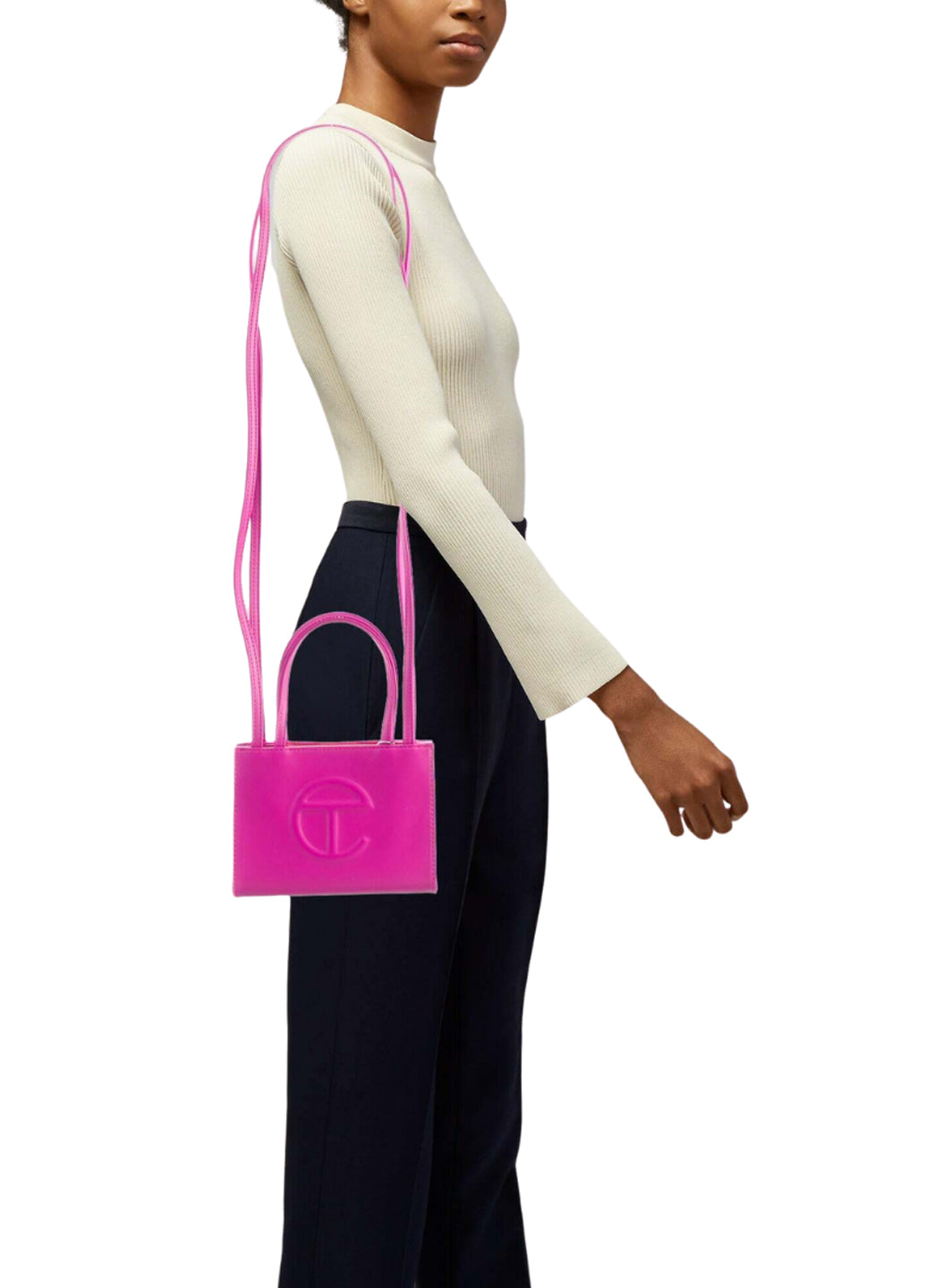 Культова сумка для покупок - практична сумка на кожен день. Вона має подвійні ремінці (ручки та ремінці через плече), тиснений логотип і магнітну застібку. Виготовлена зі штучної шкіри з підкладкою з твілу, сумка поставляється в мішечку зі шнурком з 100% бавовни із трафаретним логотипом.