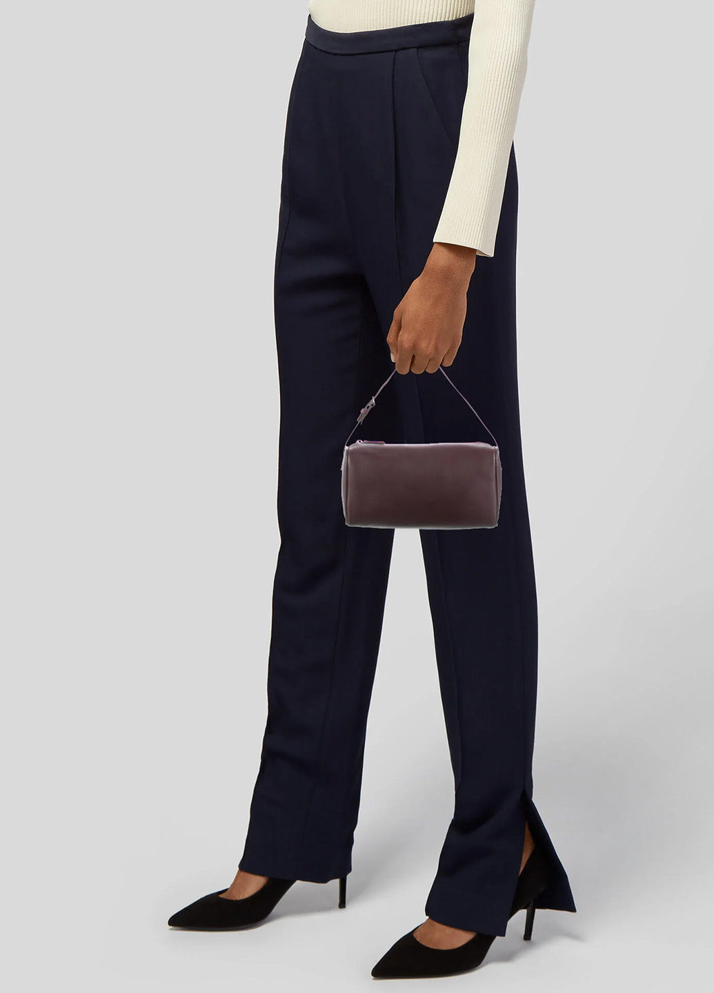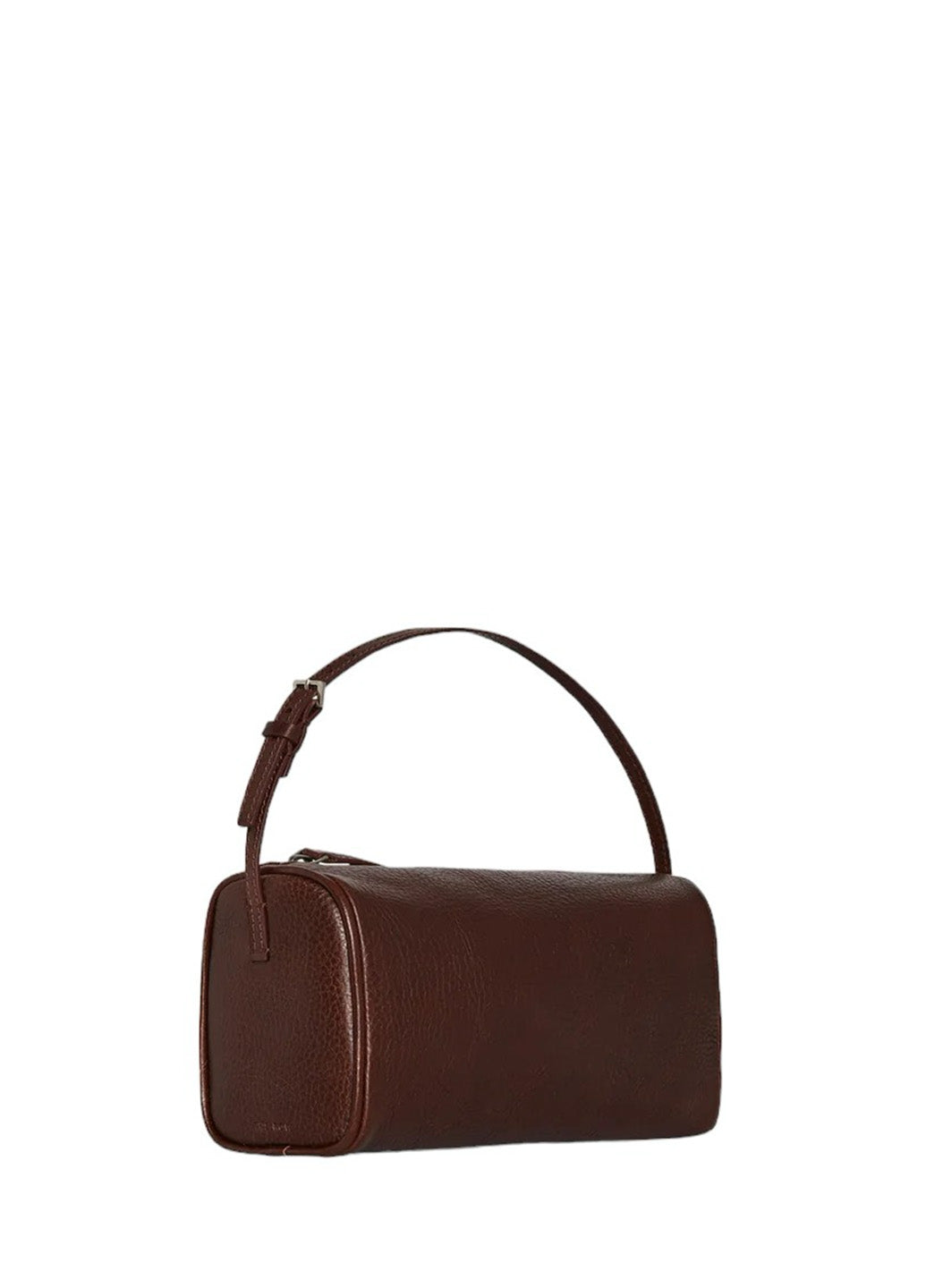 Сумка з дрібнозернистої натуральної шкіри з м'яко закругленими краями, шкіряною окантовкою і регульованим тонким шкіряним ремінцем.