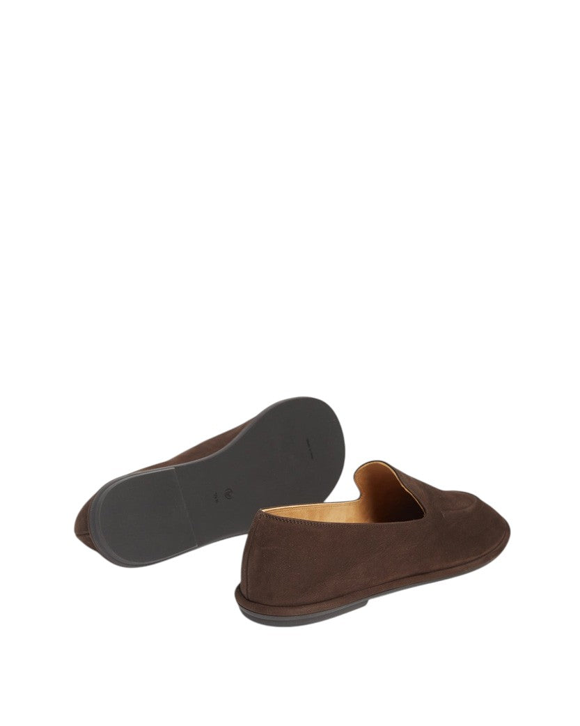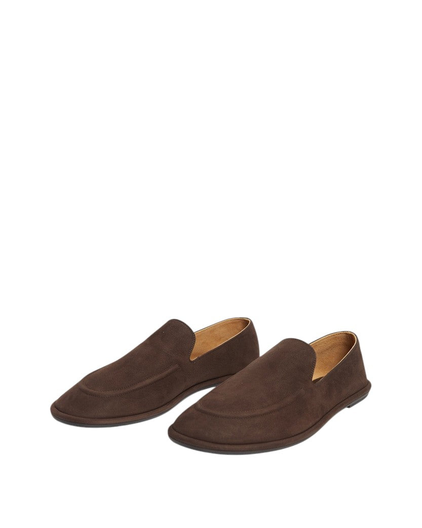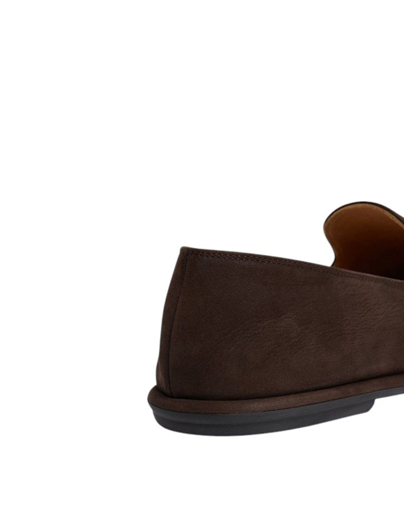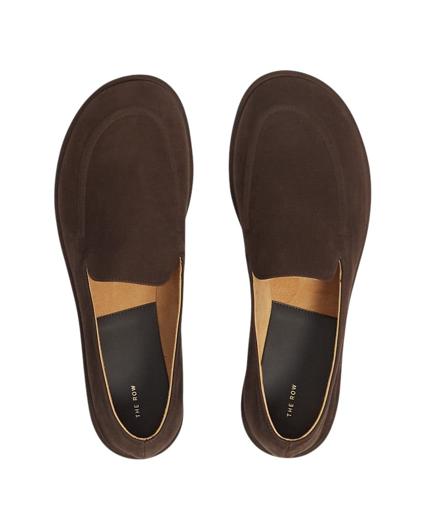 The Row Canal Loafer in Suede Leather — втілення мінімалістичної розкоші та чистої естетики, за яку цінують The Row. Лофери виконані з високоякісної замшевої телячої шкіри, що надає парі вишуканості та глибокої, благородної фактури. Лаконічний дизайн без фурнітури підкреслює стриманий характер моделі, а витончений масивний силует створює сучасний, збалансований акцент. Це універсальна пара, яка однаково гармонійно поєднується з класичними брюками, елегантними спідницями чи більш relaxed-комбінаціями з денімом.