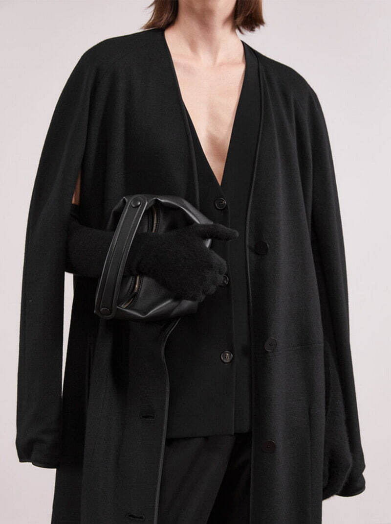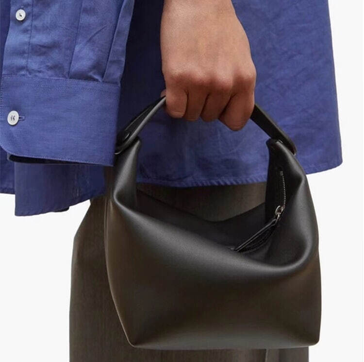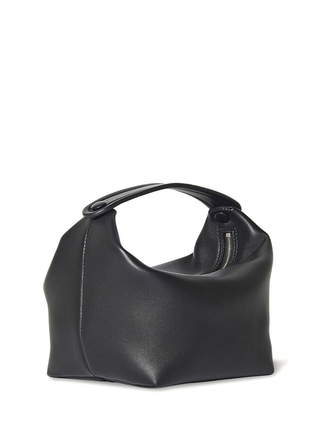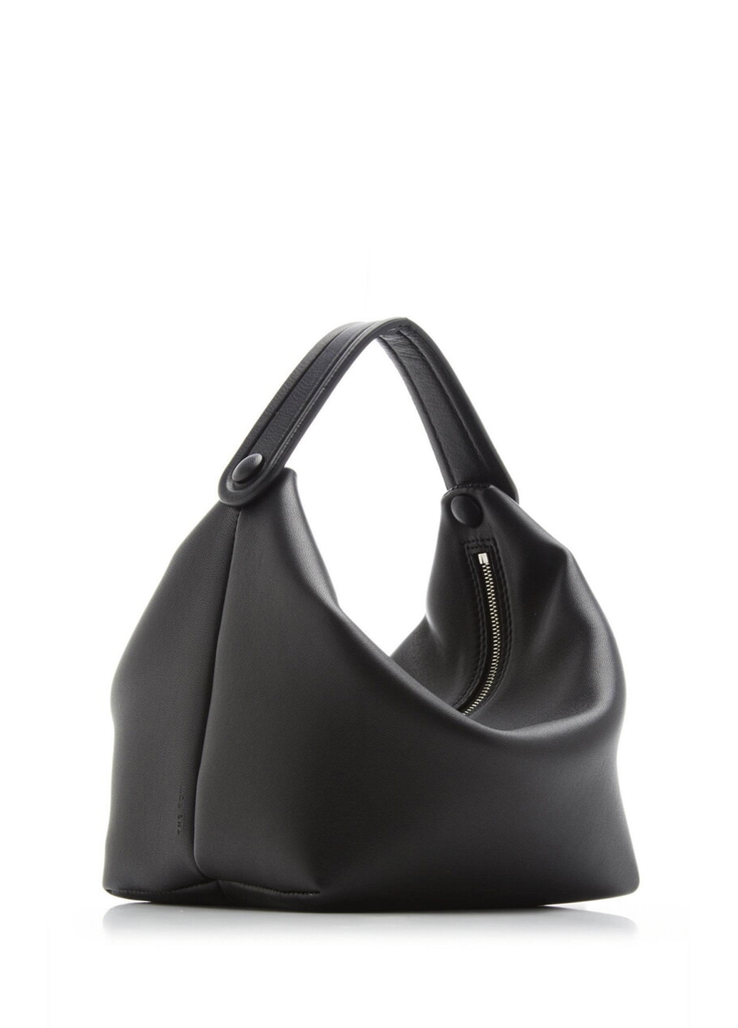 Сумка The Row Les Bains Tote являє собою класичну маленьку сумку, але з цікавою деталлю у вигляді ручки, яка утворюється, коли краї сумки застібаються між собою на кнопку. Ця модель представлена в елегантному чорному кольорі, має одне основне відділення, яке застібається на блискавку.