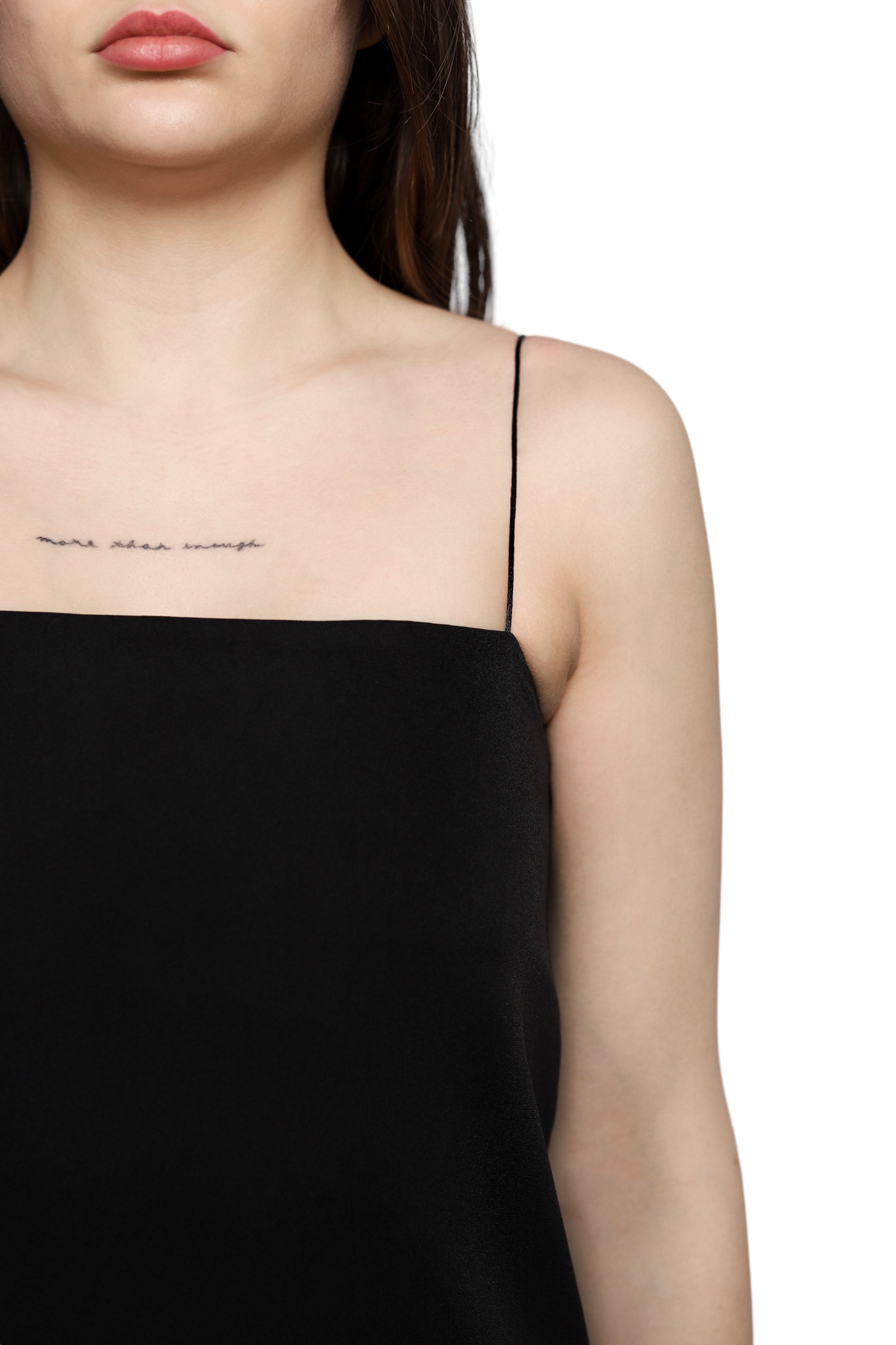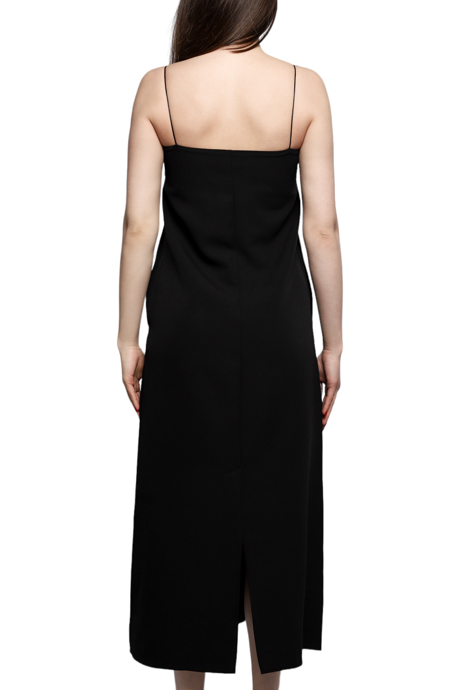 Сукня від The Row із стрейчевого нейлонового трикотажу у чорному кольорі на бретельках — це стильний і зручний вибір для різних заходів. Вона має квадратний виріз і приховані кишені у бокових швах, що додає практичності і зручності. Центральний шов і розріз ззаду додають цікавості до дизайну цієї сукні, а відсутність підкладки робить її легкою і комфортною для носіння влітку.
