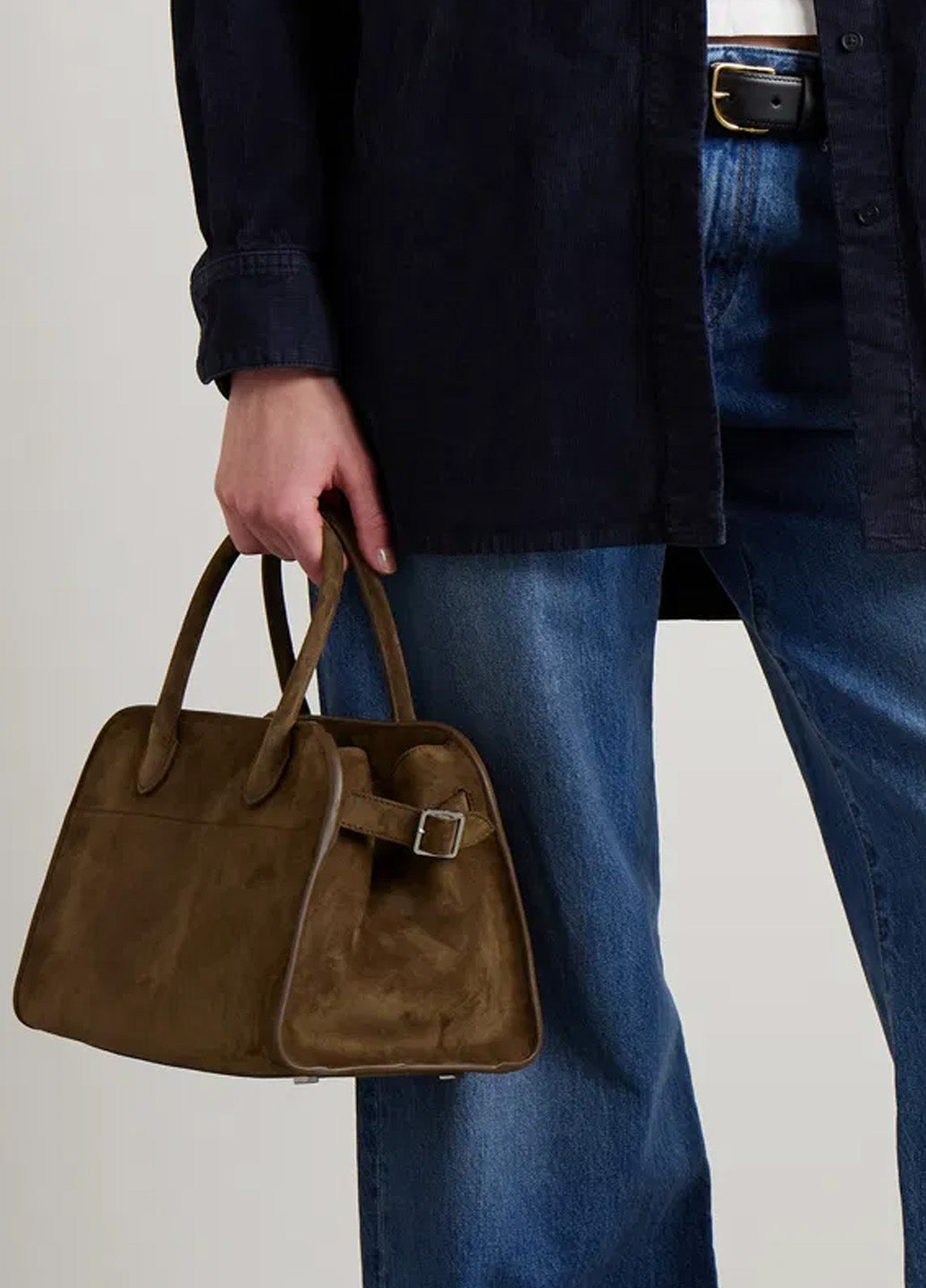 The Row Soft Margaux 10 Bag in Suede Mocha
