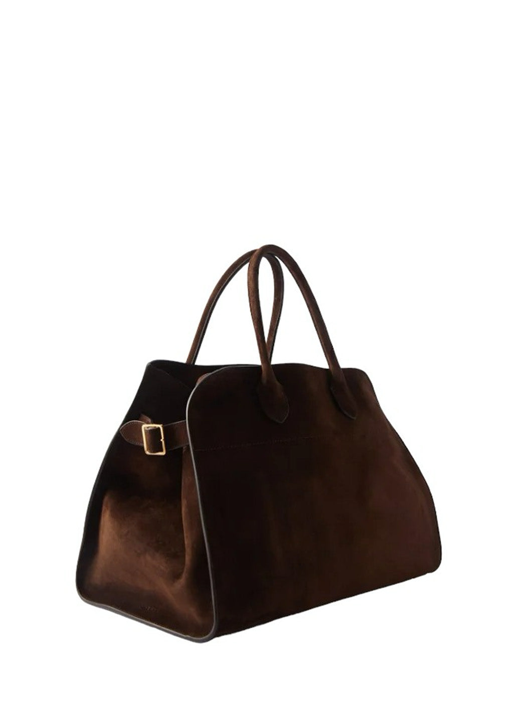 The Row Soft Margaux 15 Bag in Suede Mocha
