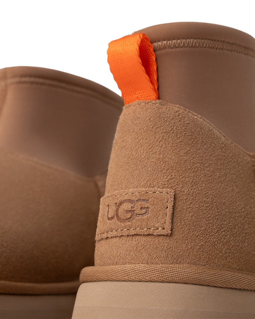 Оздоблені тканою петлею та фірмовим брендингом UGG, ці черевики додають розкоші вашому образу, поєднуючи стиль із комфортом та практичністю.